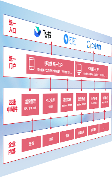 对协作平台提供支持服务,,支持企业应用与协作平台对接,,包含组织同步、、消息集成、、待办集成等。。。。支持目前主流的协作平台:钉钉、、企微和飞书。。